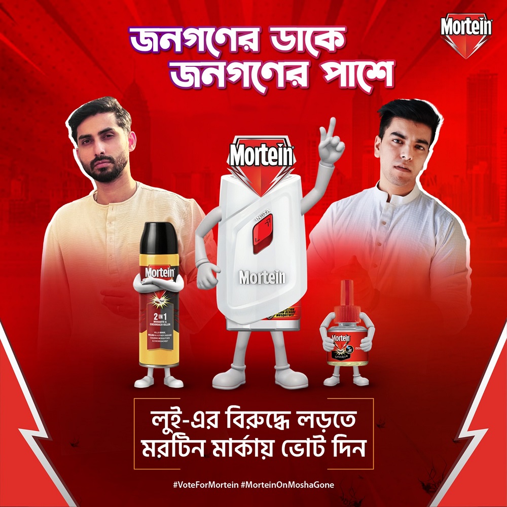 Mortein’s campaign — a blend of humor, health awareness, and political parody — comes with a slogan straight out of an election rally: “Jonogoner Dakey, Jonogoner Pashe” (With the People, For the People).
