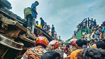 The accident occurred at 3:50pm yesterday when the cargo train hit from behind the Dhaka-bound Egarosindhur Godhuli Express which was coming from Kishoreganj.